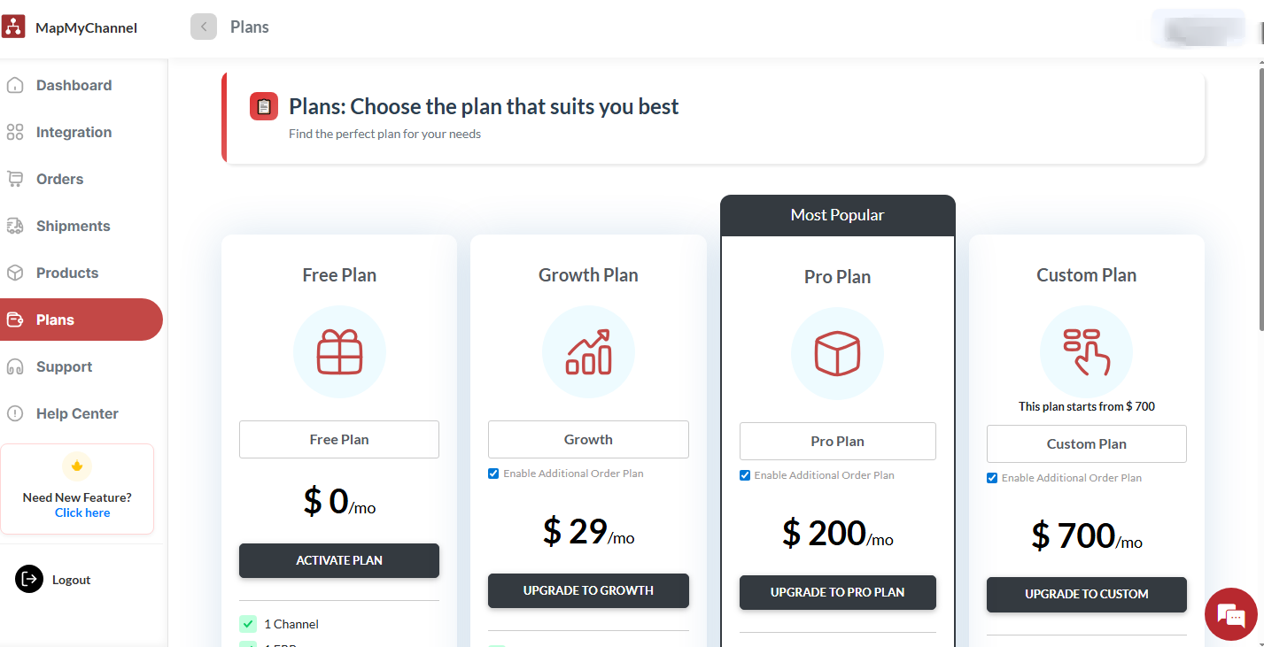 Step 4: Finally, you are on the plan page. Initially, our app offers you a 14-day free trial; after that, you need to subscribe to one of our plans to sync orders to a connected ERP or fulfillment partner.
