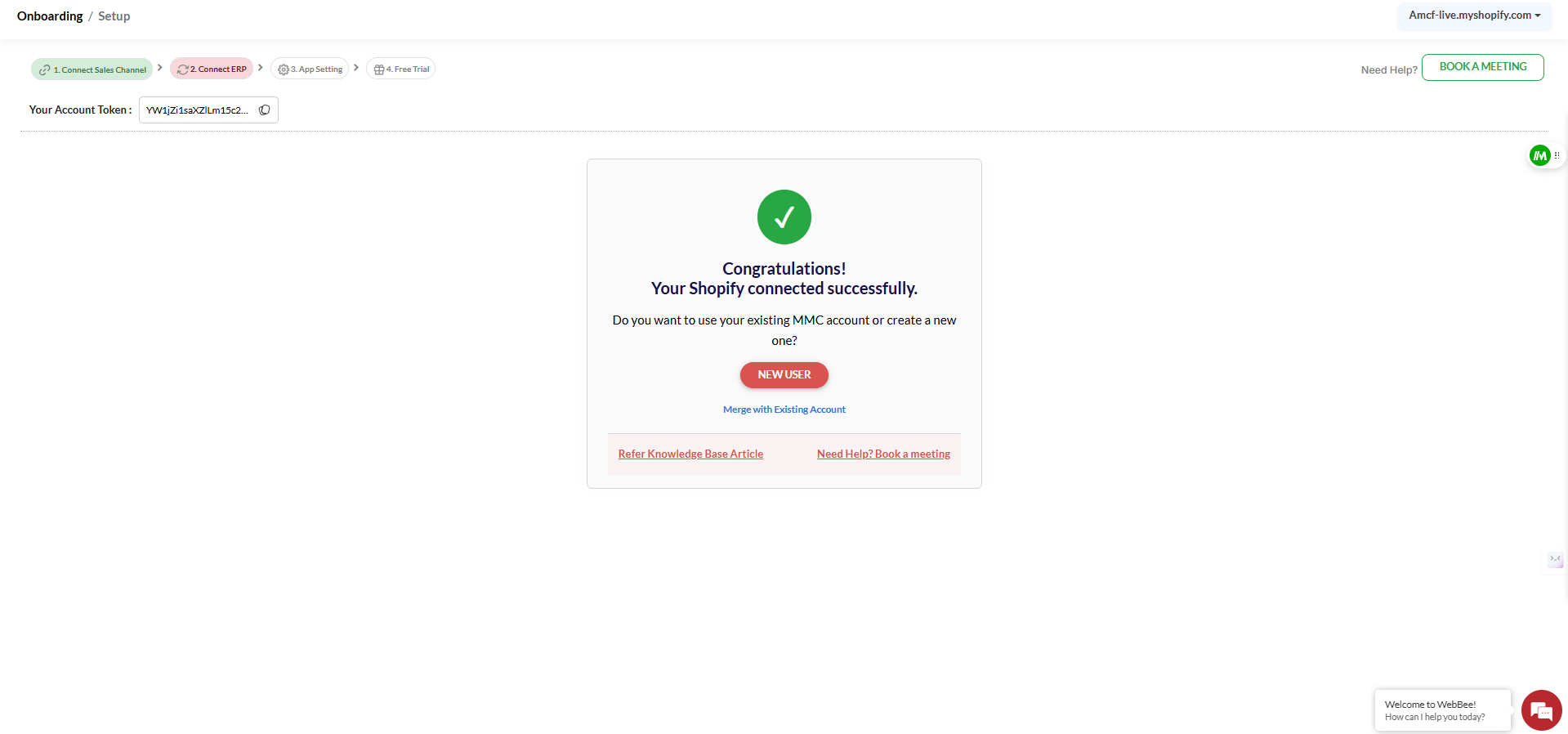Now a pop-up will appear on the second page that asks you whether you are a new user who is setting up the app or an existing MapMyChannel user who wants to merge this MapMyChannel Shopify account with your other existing MapMyChannel account.