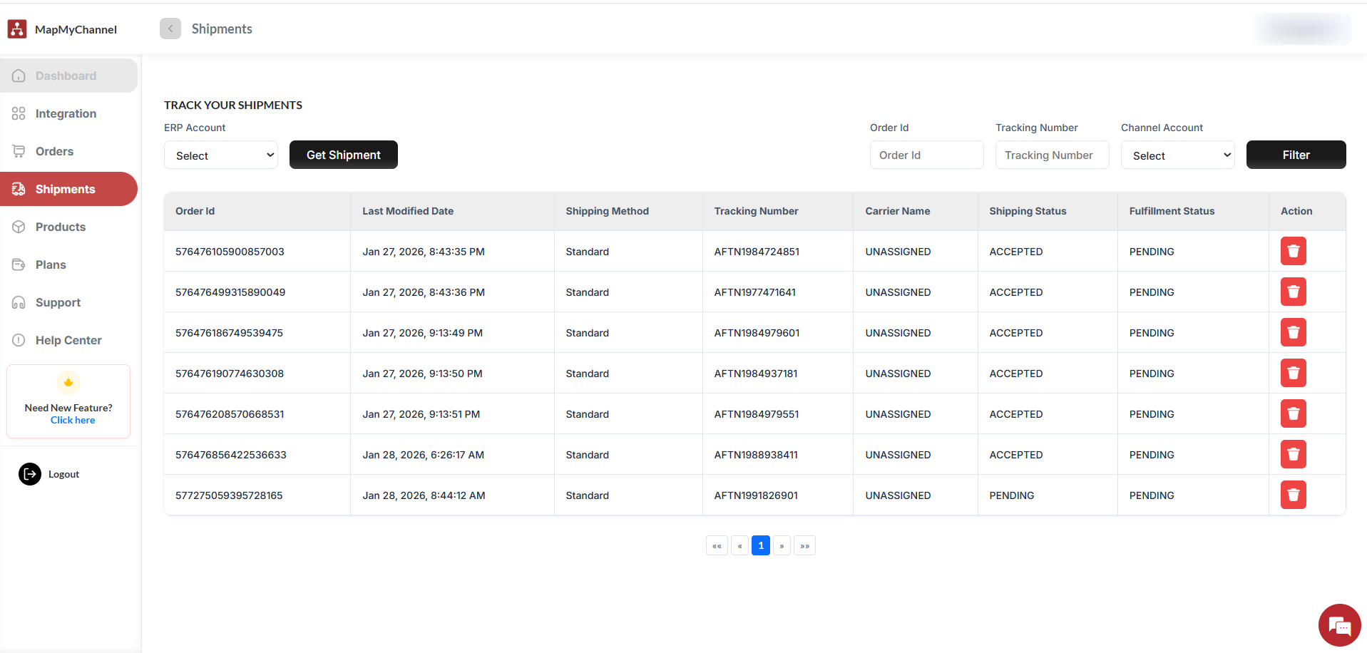 Deletes the shipment record only from MapMyChannel.